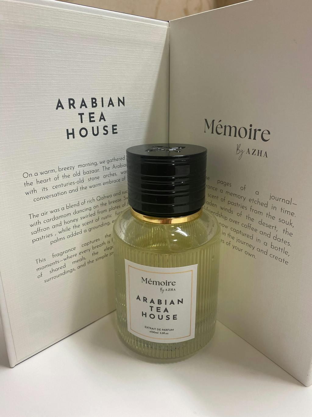 Arabian Tea House Extrait De Parfum, from the Memoire by AZHA Collection, offers a warm and luxurious unisex fragrance experience. It opens with the rich, comforting blend of coffee, date, and saffron, evoking the essence of Arabian hospitality. The heart of the fragrance is a beautiful floral composition of cardamom, rose, and jasmine, adding depth and elegance. The scent settles into a refined base of dry woods and vanilla, leaving a lasting and sophisticated impression. Ideal for those who appreciate bold yet balanced fragrances with a touch of tradition.
